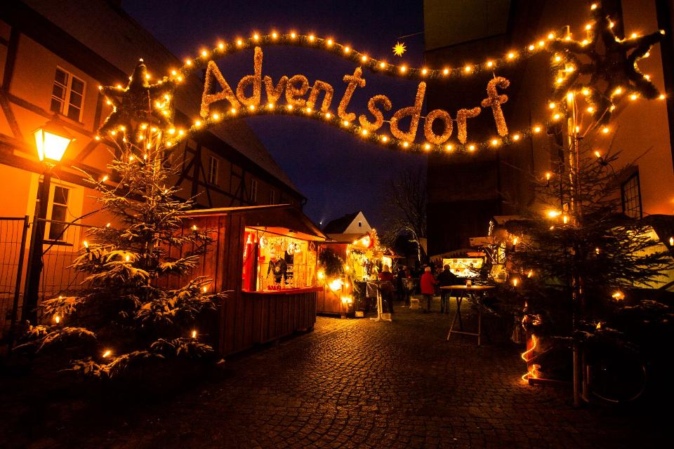 Stadt Wassertrüdingen Marktstraße, Wassertrüdingen, Bayern, DeutschlandDie Stimme des Christkinds und der Gesang vieler Kindergartenkinder bedeuten: Das Trüdinger Adventsdorf ist eröffnet! Viele Menschen lauschen dem Bühnenprogramm, dann folgt ein Bummel von Bude zu Bude. Viele Buden…